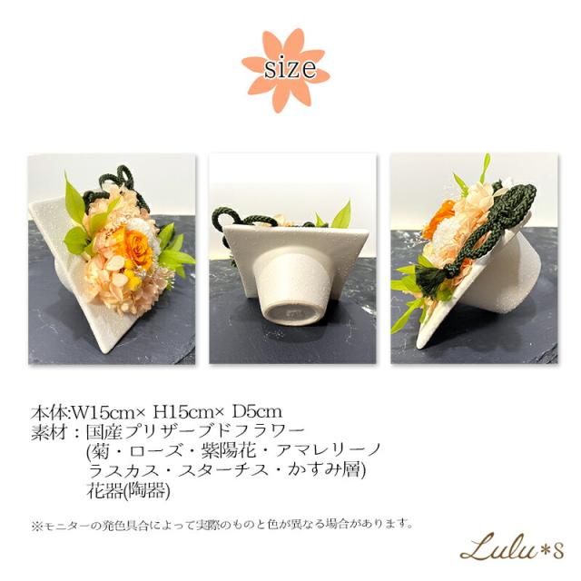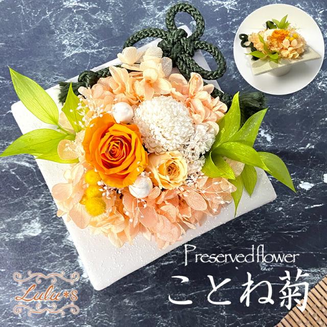 ことね菊 和風モダン ローズ 紫陽花 あじさい 薔薇 プリザーブドフラワー フォト 写真 誕生日 プレゼント 母の日 贈り物 ギフト プリザ ブリザーブド ウェディング 退職祝い モダン 和風 オシャレ オレンジ lulus-0576 Lulu*s ルルズ