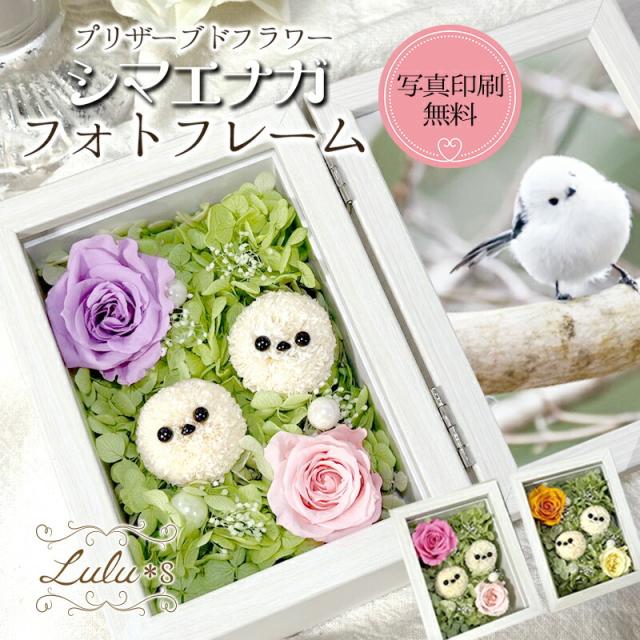 プリザーブドフラワー シマエナガ ウッドフレーム ローズ ホワイト 雪の妖精 妖精 他にない かわいい 鳥 ローズ バラ 薔薇 フォト 紫陽花 アジサイ 白 写真 誕生日 プレゼント 母の日 贈り物 ギフト プリザ ブリザーブド ウェディング 退職祝い フォトフレーム