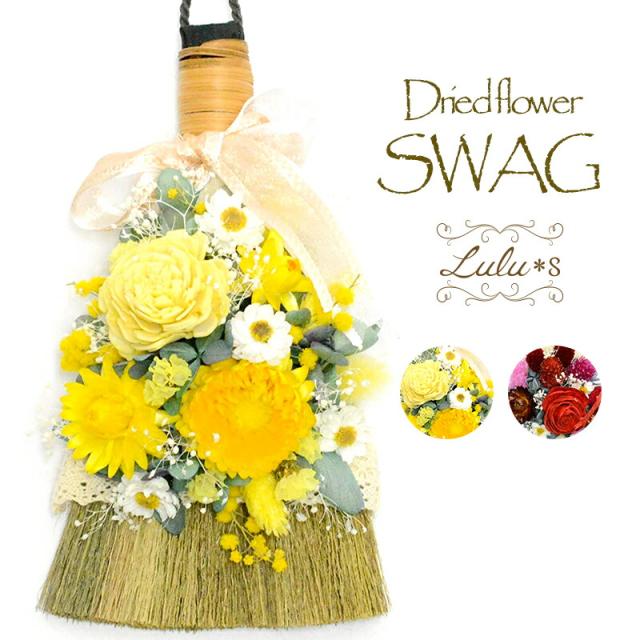 ドライフラワー ミニほうきスワッグ リース 誕生日 プレゼント 母の日 父の日 贈り物 ギフト プリザ ブリザーブド ウェディング 祝い 母の日 出産祝い サイズ:幅約10cm×高さ18cm×奥行5cm Lulus-1324 Lulu*s ルルズ