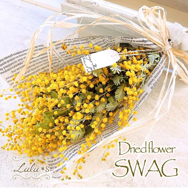ミモザのスワッグ*タグ付き ドライフラワー スワッグ ナチュラルリース ミモザ リース 造花 花 誕生日 プレゼント 母の日 父の日 贈り物 ギフト ウェディング 祝い バースデイ Lulus-1722 Lulu*s ルルズ