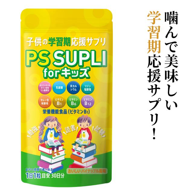 ※賞味期限2026年3月29日まで※ ホスファチジルセリン 子供 サプリ 子供用サプリ IQサプリ PSサプリ 乳酸菌 カルシウム 国内製造 パイン風味 133.4mg
