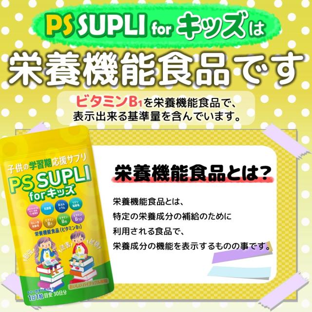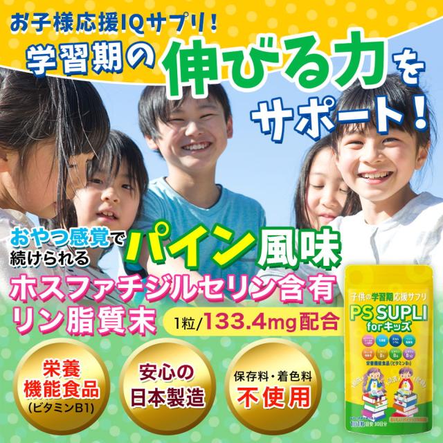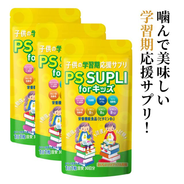 ※賞味期限2026年3月29日まで※ ホスファチジルセリン 子供 サプリ 子供用サプリ IQサプリ PSサプリ 乳酸菌 カルシウム 国内製造 パイン風味 133.4mg 3個セット