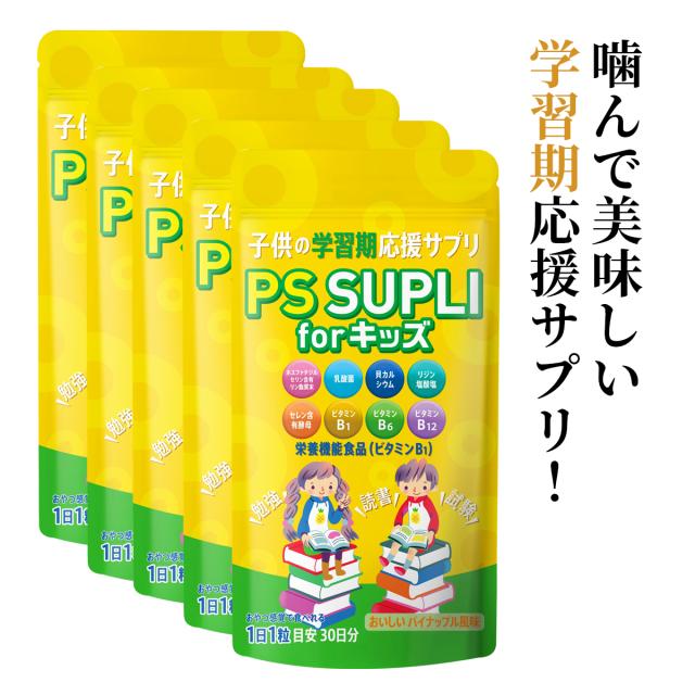 ※賞味期限2026年3月29日まで※ ホスファチジルセリン 子供 サプリ 子供用サプリ IQサプリ PSサプリ 乳酸菌 カルシウム 国内製造 パイン風味 133.4mg 5個セット