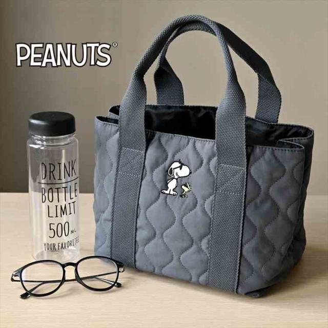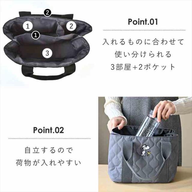 ミニ トートバッグ スヌーピー SNOOPY レディース 仕切りあり 仕切り付き 自立 ペットボトル 縦に入る 収納上手 マチ付き キルト キルティング バッグ 大人 通勤 通学 おしゃれ 仕切りバッグ サブバッグ ランチバッグ 手提げ 丈夫 無地 整理整頓 黒 ブラック ベージュ グレー