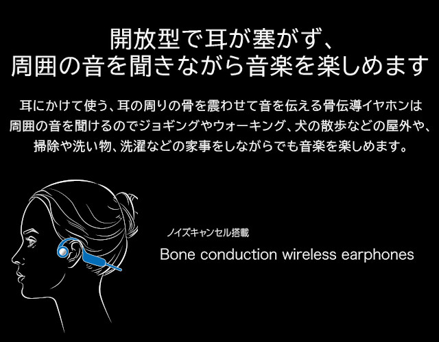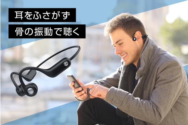 耳掛け式の骨伝導ワイヤレスイヤホン