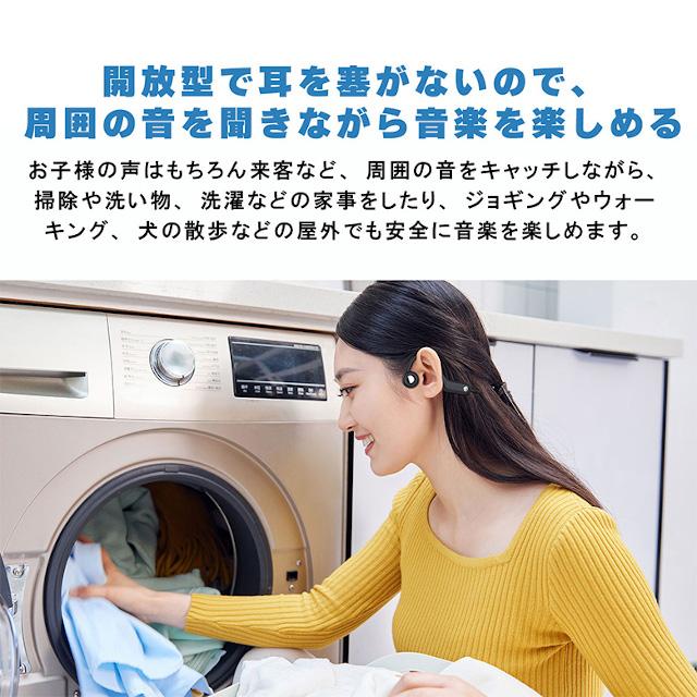 周囲の音を聞けるので、ジョギングやウォーキング、犬の散歩などの屋外や、掃除や洗い物、洗濯などの家事をしながらでも音楽を楽しめます。