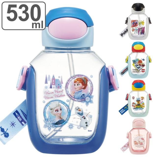 ワンプッシュ ストロー 水筒 530ml プラスチック キャラクター ( アナと雪の女王 ディズニー ハローキティ キティ パウパトロール トミカ ポケモン ストロー付き 透明 クリア ボトル シリコン 軽量 ワンタッチ 直飲み キッズ )