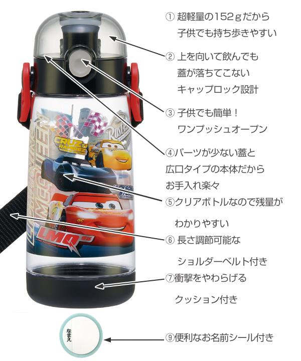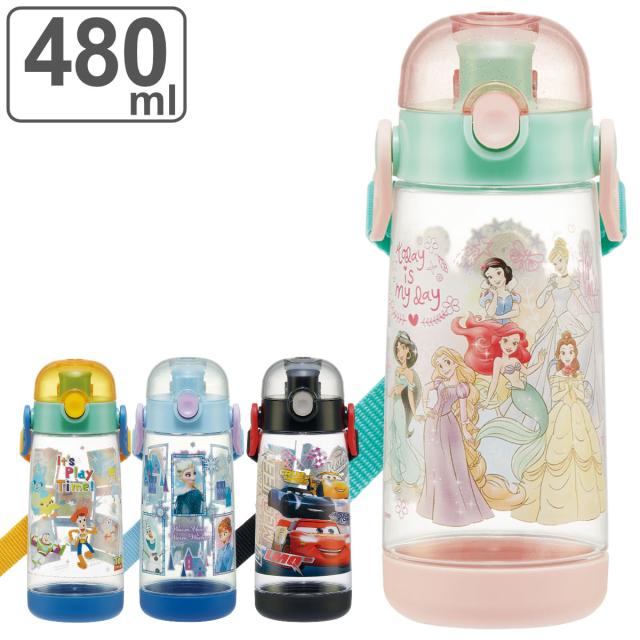 水筒 キッズ ワンタッチ プラスチック 直飲み ボトル 480ml ( カーズ トイストーリー アナと雪の女王 プリンセス ディズニー すいとう ダイレクトボトル ワンプッシュ ワンタッチオープン マグボトル 透明 クリア )