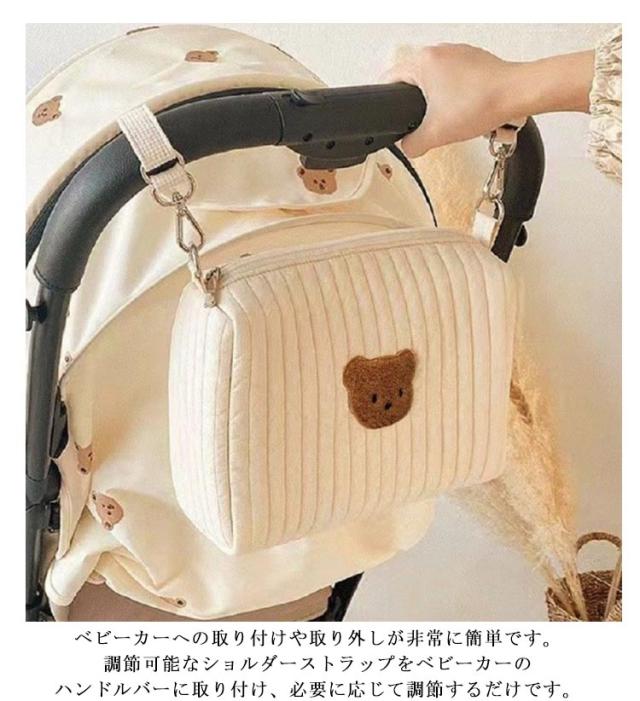 キルティング キルトポーチ おしりふき マルチポーチ かわいい ベビーポーチ 赤ちゃん オムツポーチ おむつポーチ くま ベビーカーバッグ 哺乳瓶 バッグ 小物入れ おしゃれ 刺繍 トラベルポーチ おむつ 北欧 綿 子供服