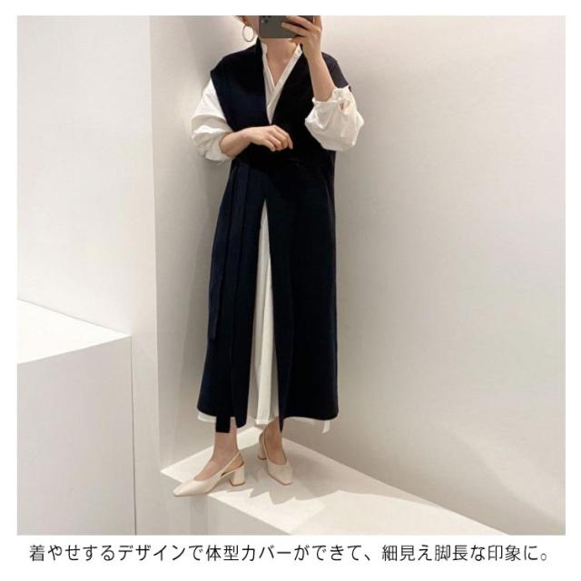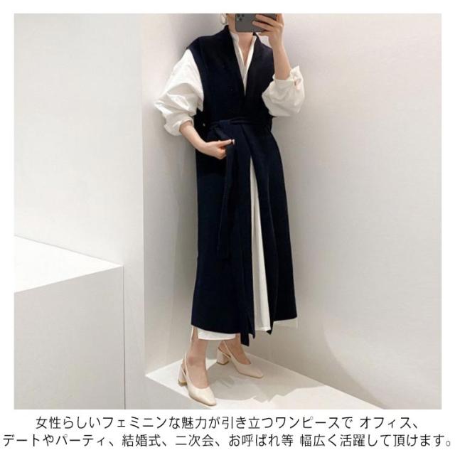 ワンピース 白ワンピース Vネック セットアップ ロングワンピース 秋冬 2点セット 黒 レイヤード 秋物 秋冬 春服 春秋 ニットベスト レディースニットベスト 長袖 ゆったり 着痩せ 重ね着 シャツワンピース 着やせ 上品 春 秋 ニットベスト