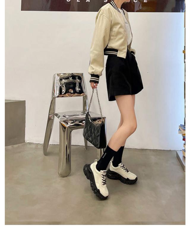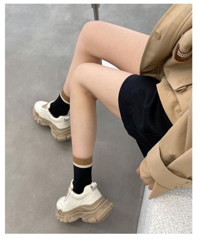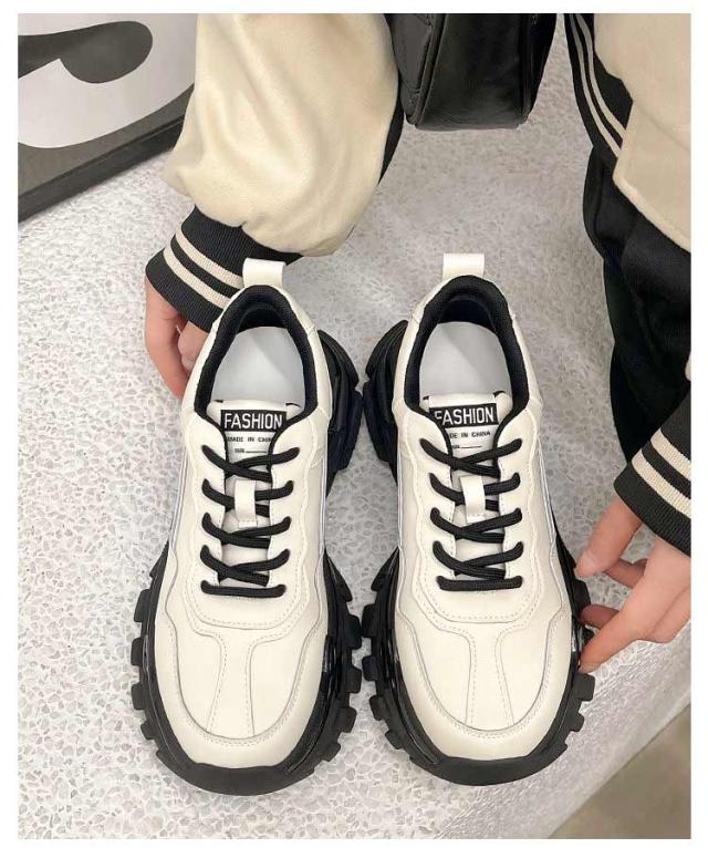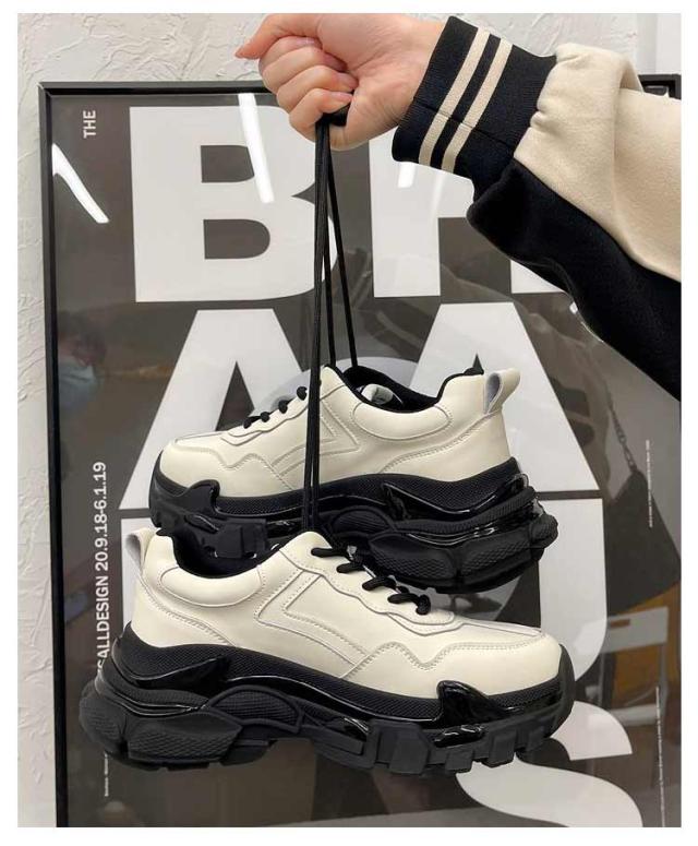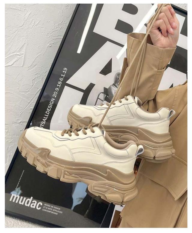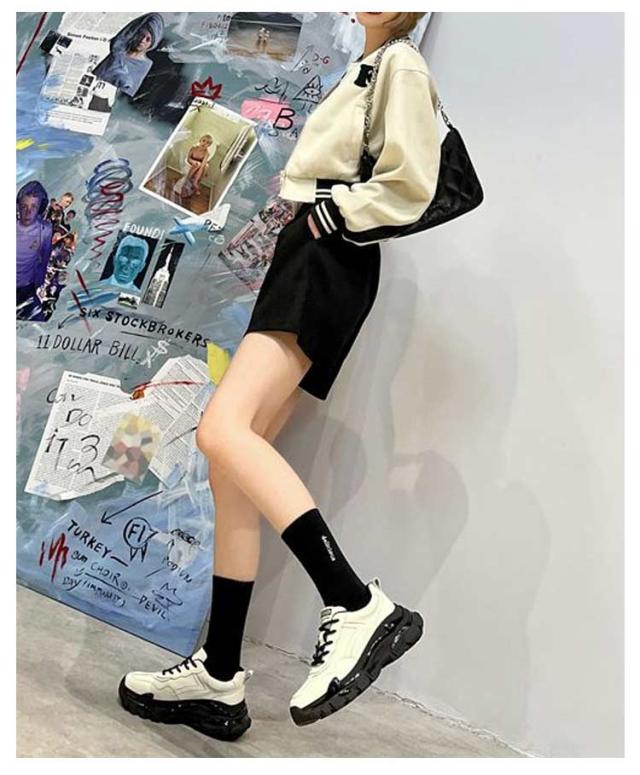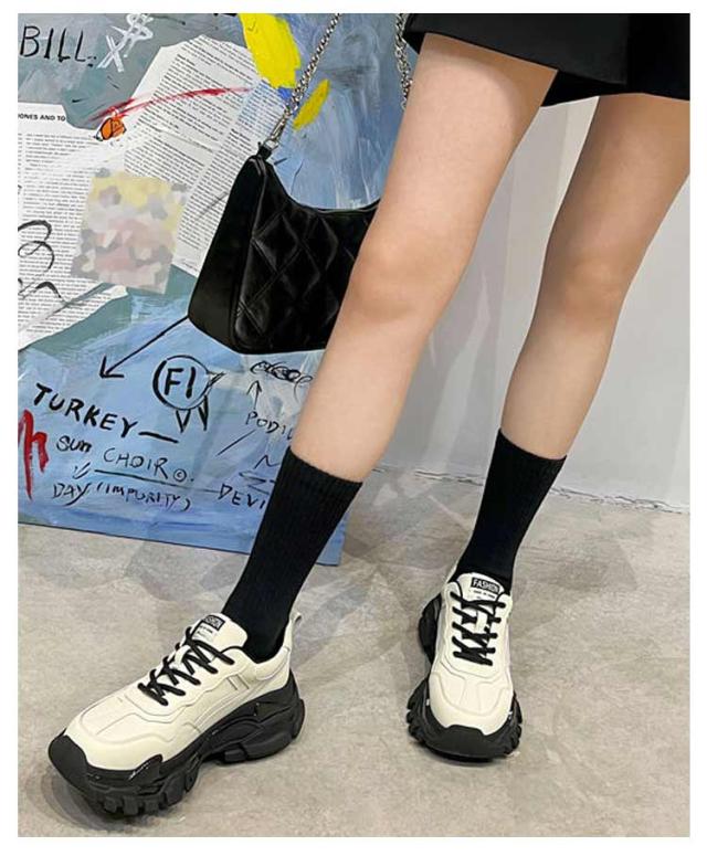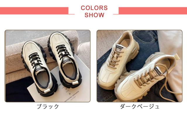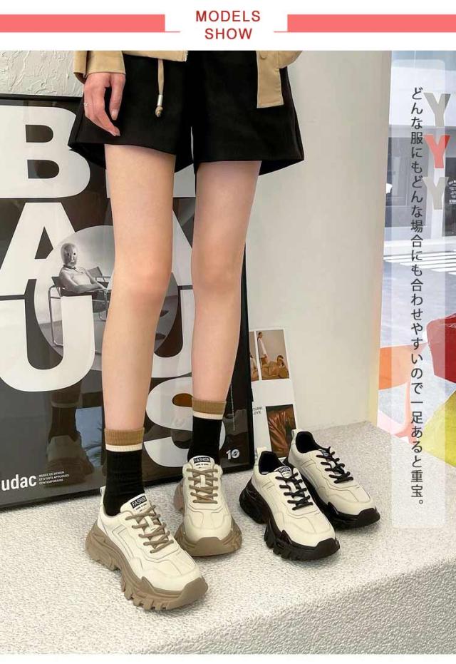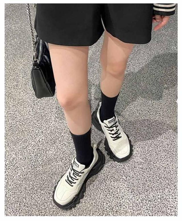 | 厚めのソールがインパクト大で歩きやすい履き心地もかなえるダッドスニーカーです。 内側には通気性の良いメッシュ素材を履き口周りには柔らかいクッションを使用し履き心地よいのも当然です。 脚が長く見える6cmソール。 底には特殊な加工を施しており、耐磨耗性が抜群、防滑テクスチャデザインは雨の日にスライドするのは簡単ではありません。 どんな服にもどんな場合にも合わせやすいので一足あると重宝。 | |