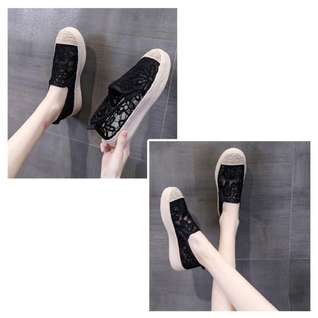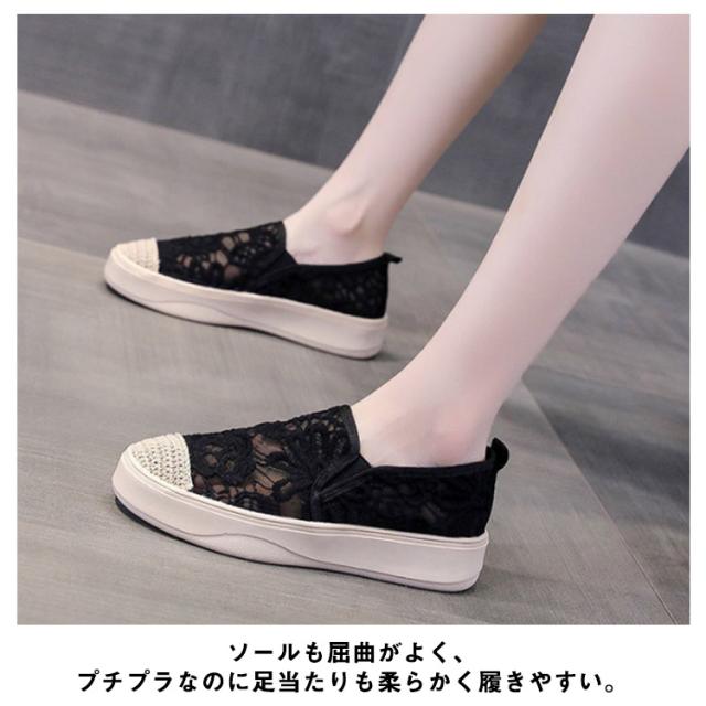 スニーカー レディース ぺたんこ スリッポン レース ベージュ ぺたんこ シューズ レーススリッポン おしゃれ きれいめ 大人 可愛い カジュアル ブラック 春 スリッポン