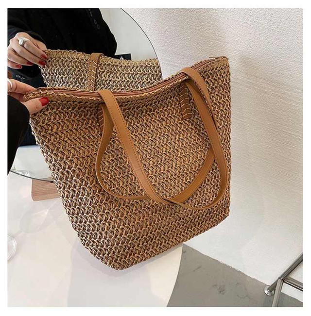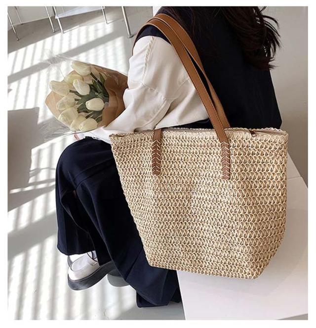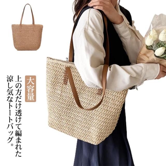 大容量 レディース 軽い ショルダー ナチュラル ショルダー ハンドバッグ カゴバック かわいい 夏 大容量 ストローバッグ ビーチ ゾート ママ ママバッグ 日常 軽量 かごバッグ