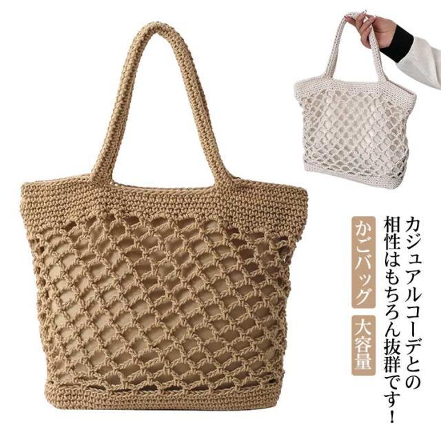 カゴバック ショルダー 大容量 ショルダー ママ ハンドバッグ レディース 夏 かごバッグ 軽い 大容量 ストローバッグ ビーチ ゾート ママバッグ 日常 軽量 ナチュラル