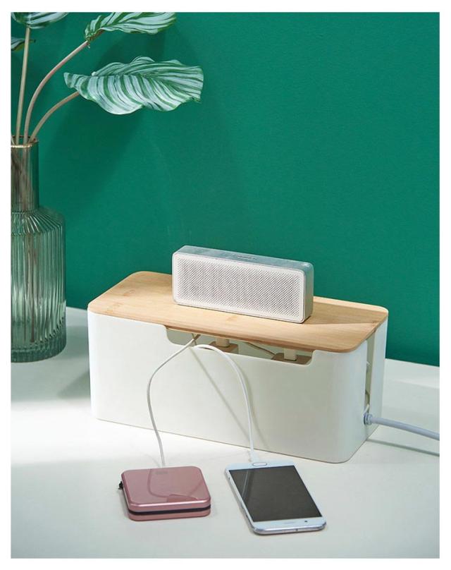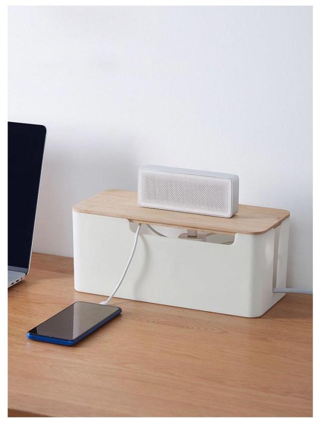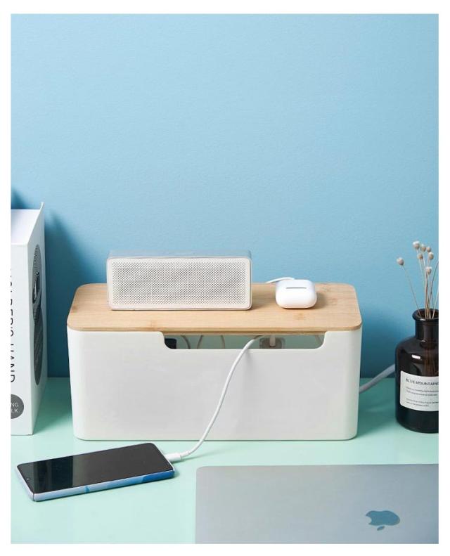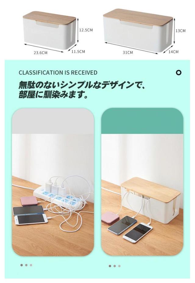 | シンプルながらスタイリッシュなケーブルボックス。 蓋付きでホコリが溜まりにくく、蓋の上に小物を置くこともできます。 無駄のないシンプルなデザインで、部屋に馴染みます。 側面には通気口を施し、熱がこもりにくいように設計されています。 | |