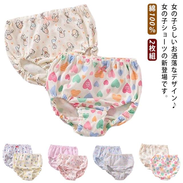 柔らかい キッズ 下着 可愛い パンツ 2枚組 綿100% 肌着 インナー ショーツ 女の子 女児 アンダーウェア 小学生 幼児 保育園 幼稚園 子供用