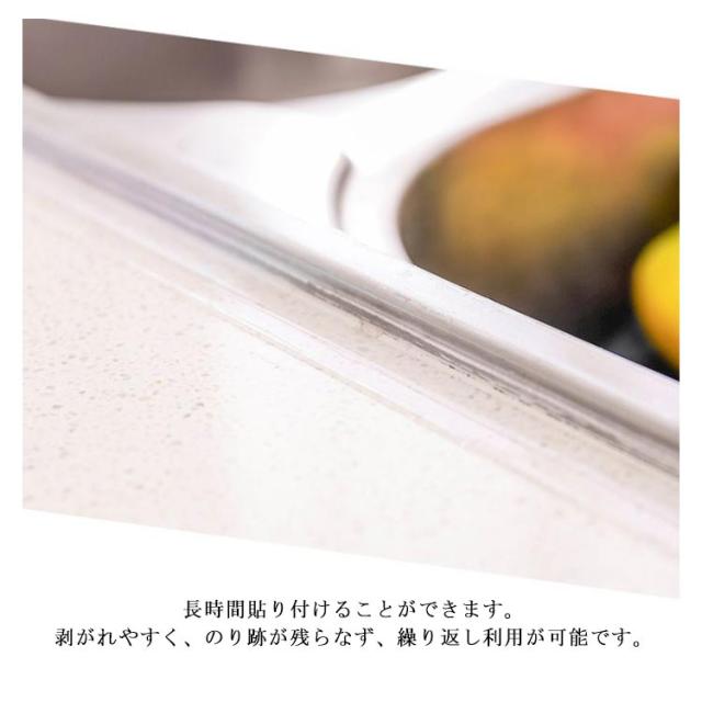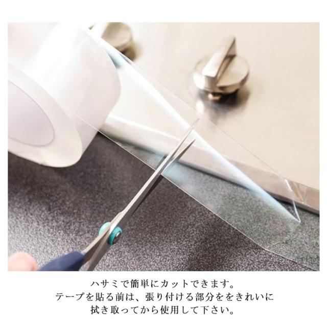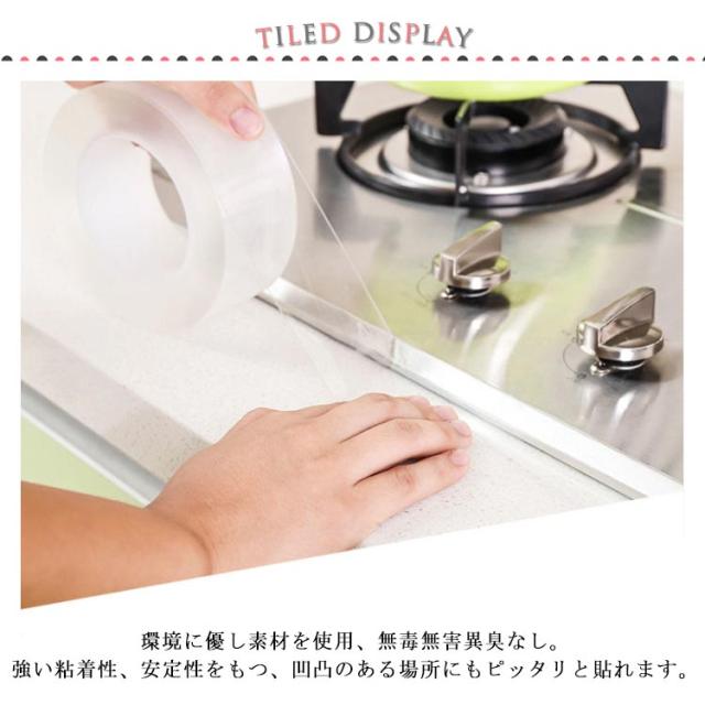 | ●高品質素材 環境に優し素材を使用、無毒無害異臭なし。 強い粘着性、安定性をもつ、凹凸のある場所にもピッタリと貼れます。 長時間貼り付けることができます。 剥がれやすく、のり跡が残らなず、繰り返し利用が可能です。 ●水、汚れ、カビ、ホコリをブロック 汚れに強く防水効果も抜群。 防カビ剤入りのため、カビのトラブルを防ぎます。 テープが汚れた際は、洗剤で簡単に洗い落とせるので掃除が楽になります。 ●水回りで大活躍 お風呂、浴槽、浴室、洗面所、キッチン、トイレなど様々な場所をきれいに維持します。 ●便利な使い方 ハサミで簡単にカットできます。 テープを貼る前は、張り付ける部分ををきれいに拭き取ってから使用して下さい。 貼り直しを繰り返すと粘着性が下がるため、なるべく一度で仕上げてください。 テープを剥がすコツ:スクレーパーあるいはカッターナイフを使ってゆっくり剥がしてください。 ●なじみやすいテープ 透明感が高く、変色しにくいので、あらゆるシーンでお使いいただけます。 | |