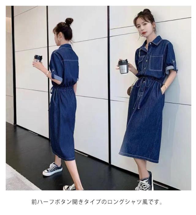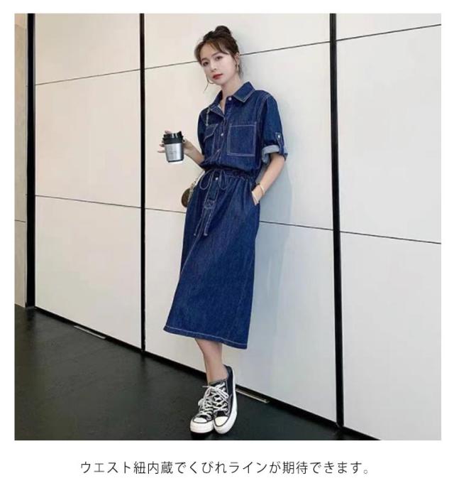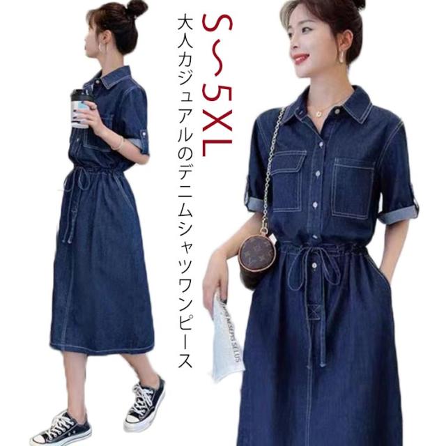 カジュアル お出かけ シャツワンピース デニムワンピース 秋 長袖 ワンピ 春 ロールアップ ワンピ デニムワンピース ロング デニム シンプル 無地 シンプル 脚長 シャツワンピ 体型カバー ゆったり 普段着 通勤 日常デート 着痩せ 上品 20代 30代 40代 50代 おしゃれ
