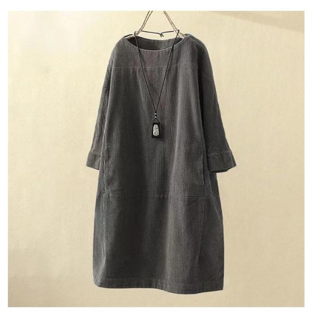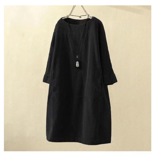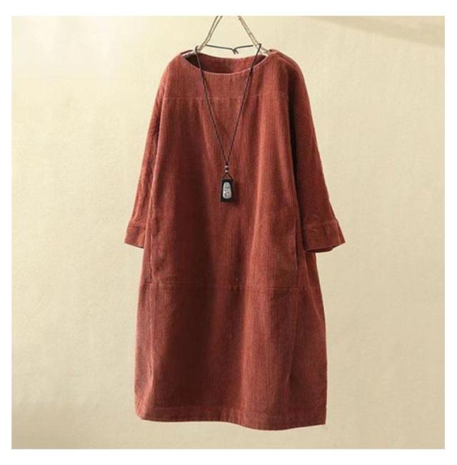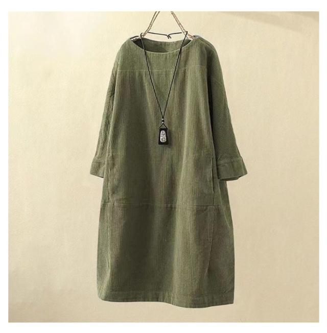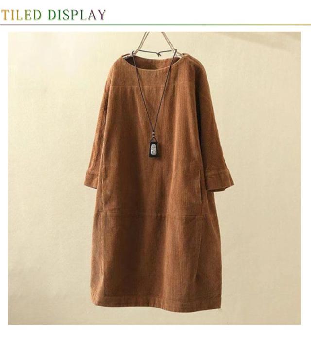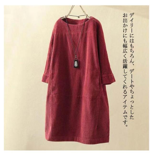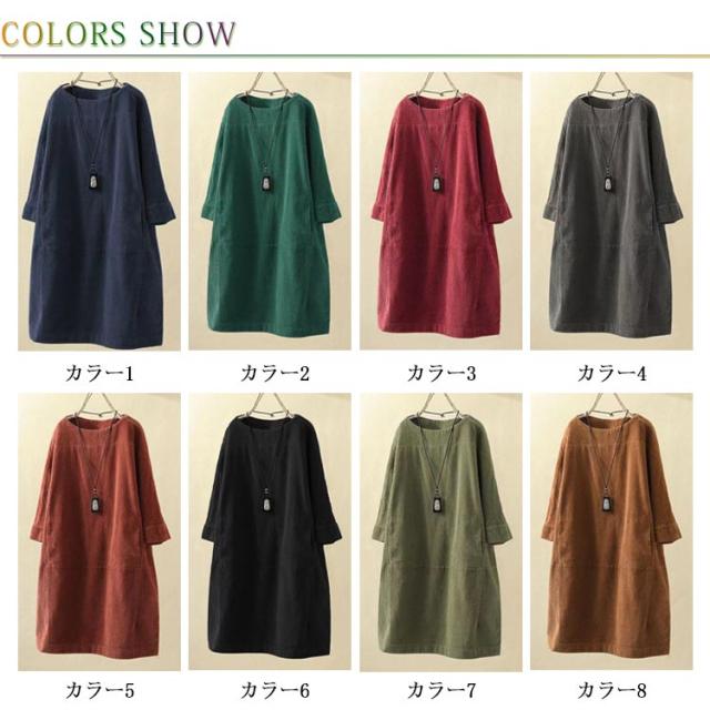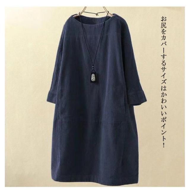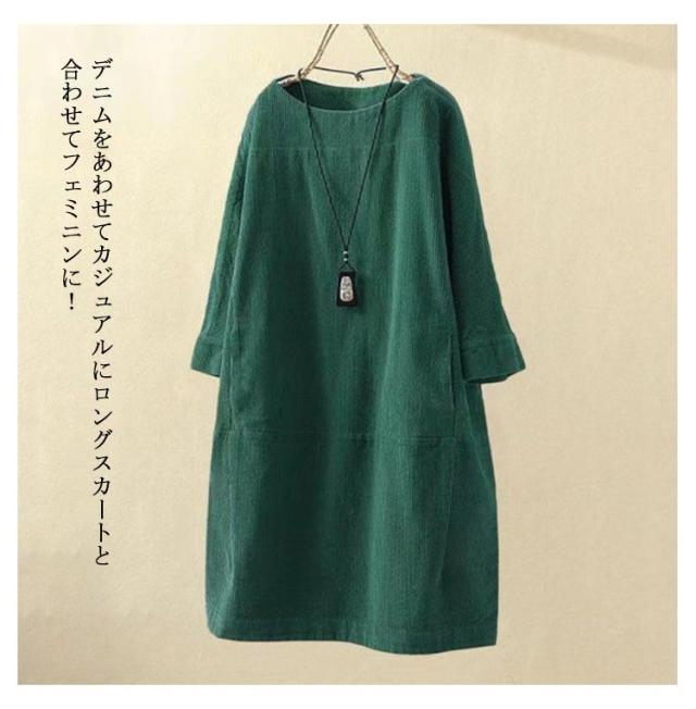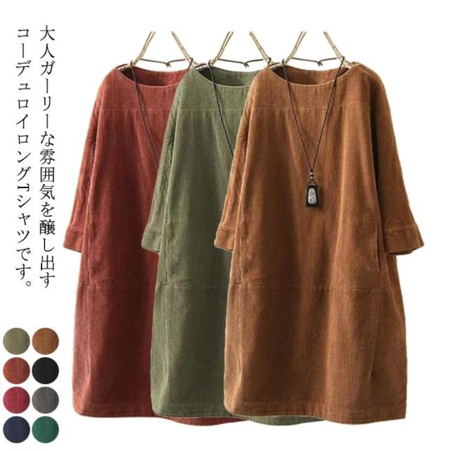 チュニックワンピース 長袖 レディース 体型カバー ワンピース トップス 七分袖 チュニック 森ガール カジュアル 全8色×8サイズ!コーデュロイ 5XL M L XL 2XL 3XL 4XL レトロ