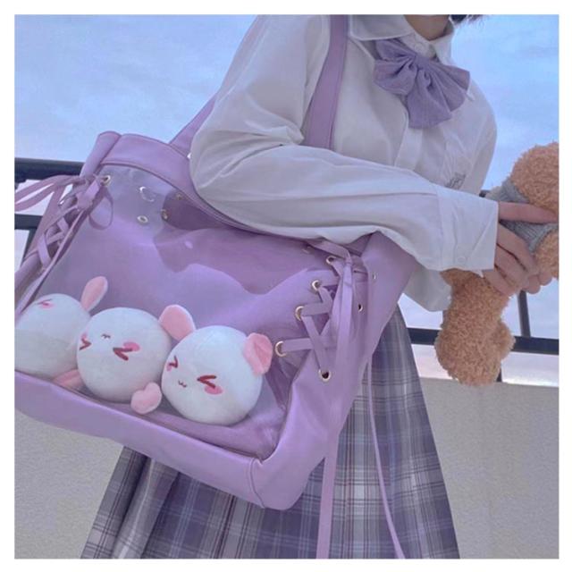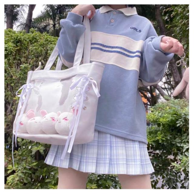 痛バ トートバッグ 痛バッグ 学生 遠足 JK ビニール バック ぬいぐるみ かばん 缶バッチ lolita デイバック ショルダーバッグ 大人 用 ライブ用 痛いバッグ 缶バッジ 制服 透明 通勤通学 大容量 通学 見せバッグ