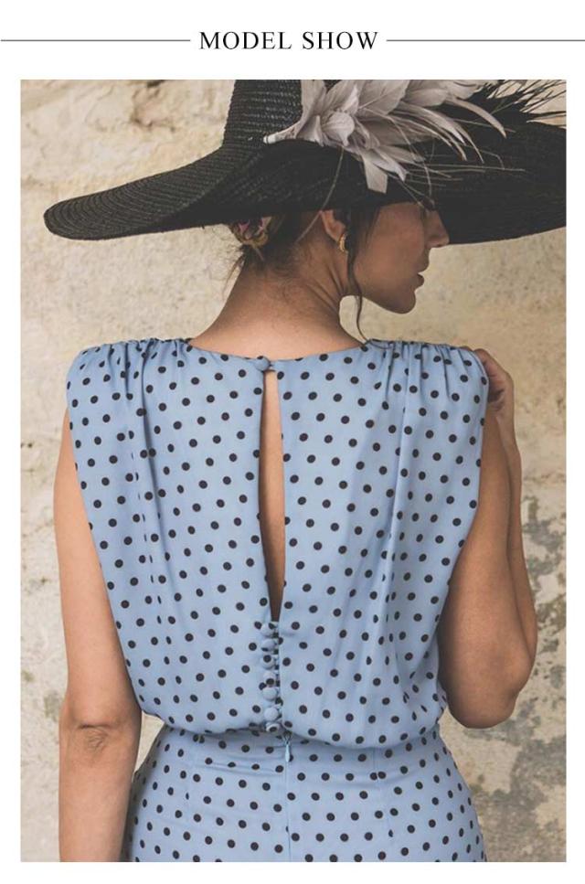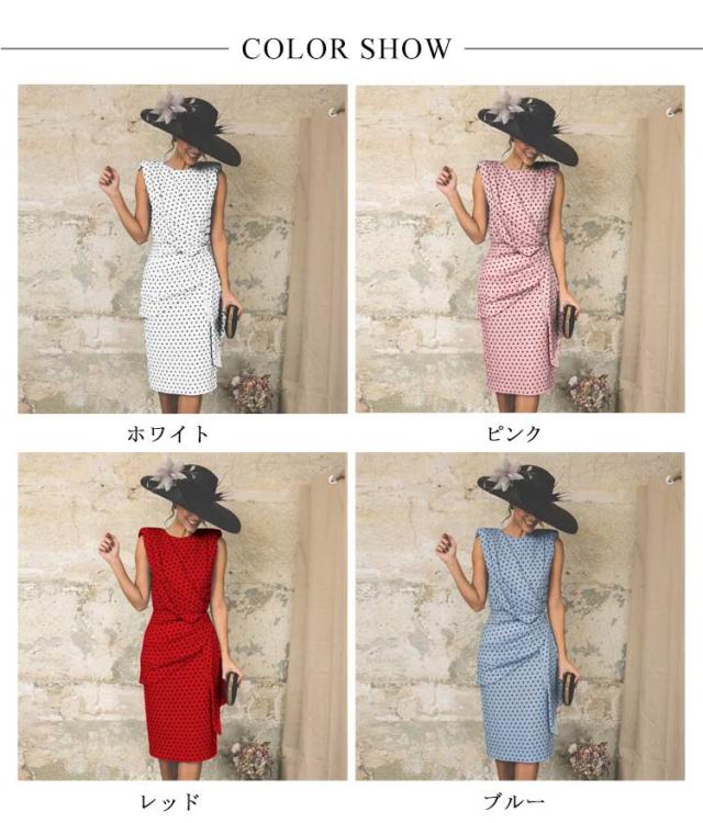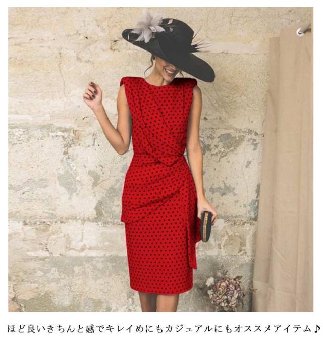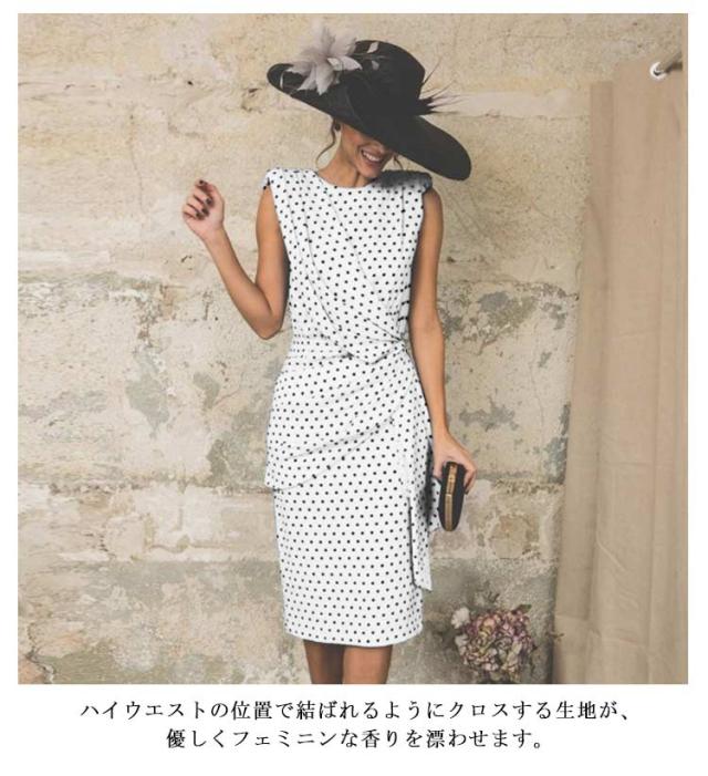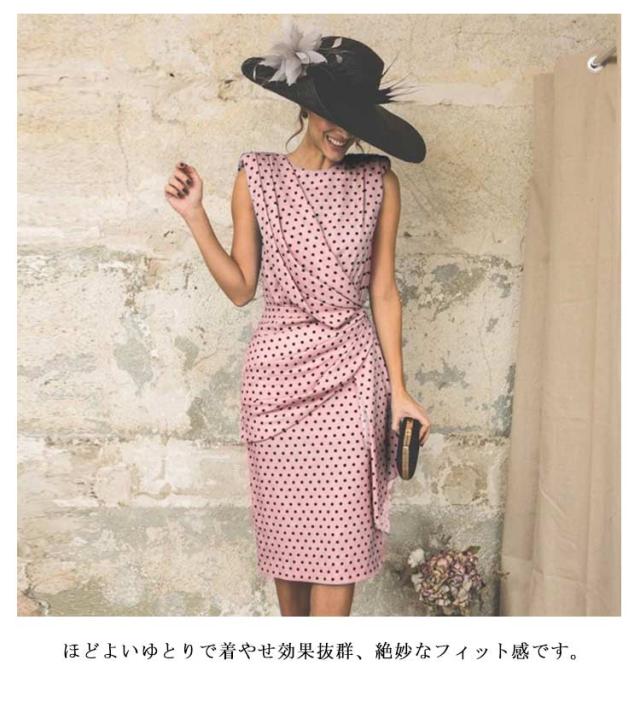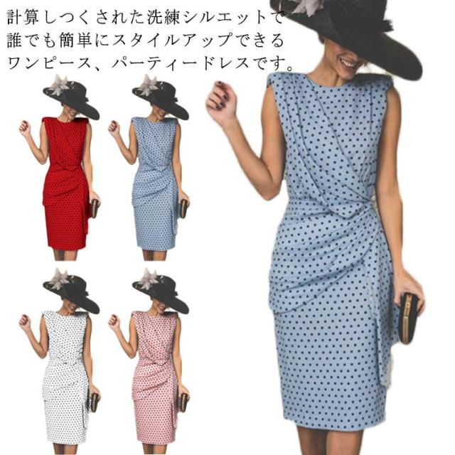 ひねり 着痩せ レディース ノースリーブ ノースリーブ ワンピース ドット柄 春 夏 タイトワンピース 体型カバー ひざ下丈 クルーネック カジュアル オフィス 大人 上品 ロングワンピース 可愛い ドレス