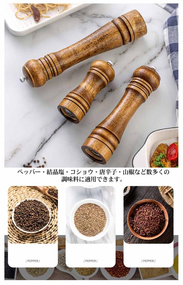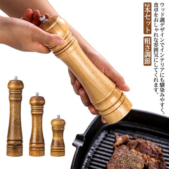 セラミック 2本セット!ペッパーミル 粗さ 天然オークミル 胡椒 ソルトミル ペッパー コア スパイス グラインダー 手動 木製 挽き 無垢材 天然オークミル コショウ ペパー 黒胡椒 岩塩 調節 調味料 容器 スパイス ミル 調味料挽き セラミック 粗さ調節 小型 ブラック