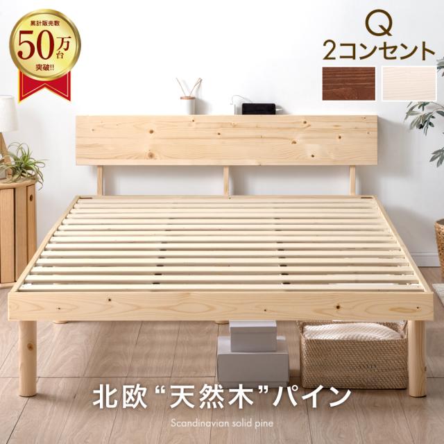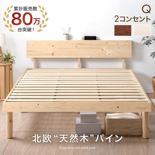 【13日0時〜P5%還元】 【80万台突破】 天然木 北欧パイン ベッド 宮棚&2口 コンセント付き クイーンベッド ベッドフレーム すのこベッド すのこベット ベット ベットフレーム クイーン