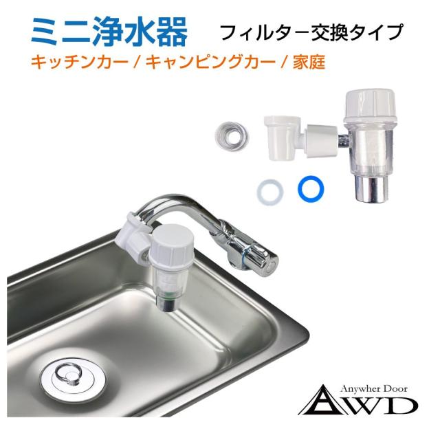 キャンピングカーパーツ 水栓 シンク パーツ | ミニ浄水器 フィルター交換タイプ AWD-WAPUS | 蛇口 車中泊 タンク カスタム 水回り 改造 軽キャンピングカー キッチンカー フレキシブル 小型 浄水機 水 濾過 フィルター 送料無料