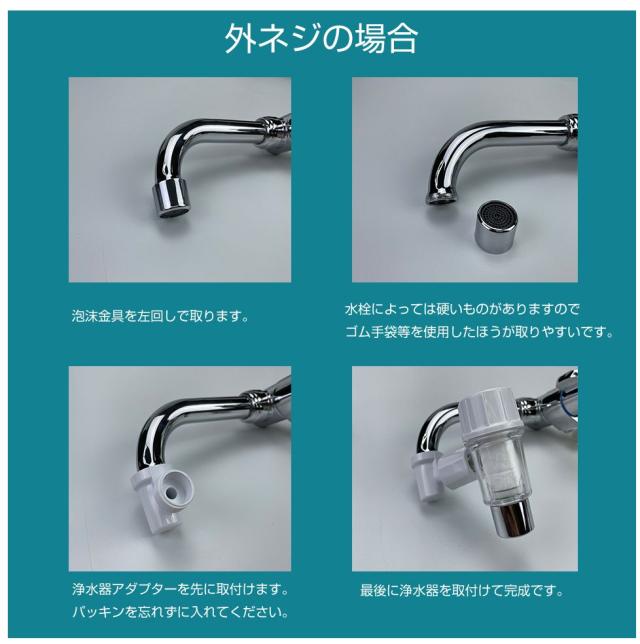 ・キャンピングカー、キッチンカーなどの水栓の為に開発された小型浄水器です。 ・吐水口にキャップが付いている蛇口に対応します。 ・自在に曲がるので、浄水の機能だけでなく、もう少し蛇口の可動範囲があればなー、、。なんてかたにもオススメ! ・フィルターが見えるので、交換時期も分かり易いです! ※別売りで交換フィルター(3個入)も販売してます。 ◆交換用フィルター3個入り AWD-WAPUSFT はこちら◆ |