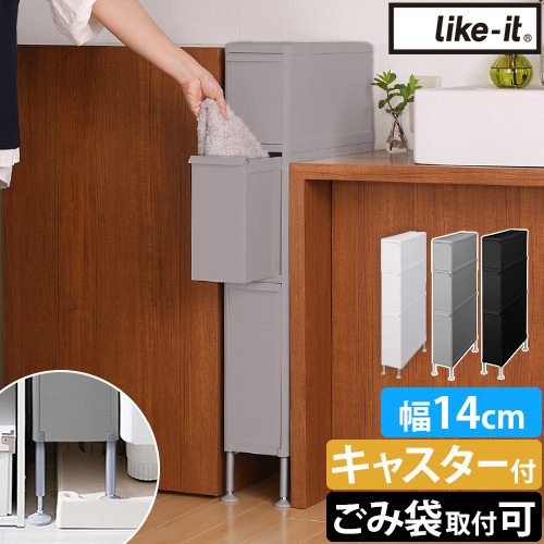 ライクイット 選べる豪華特典 隙間収納 アジャスター付きファイントールストッカー FTS-111LA 隙間収納 ランドリー収納 キッチンラック 14cm 引き出し キッチン キャスター付き 洗面所 洗濯機 タオル アジャスター付き 脚付き 防水パン 段差 中身が見えない like-it