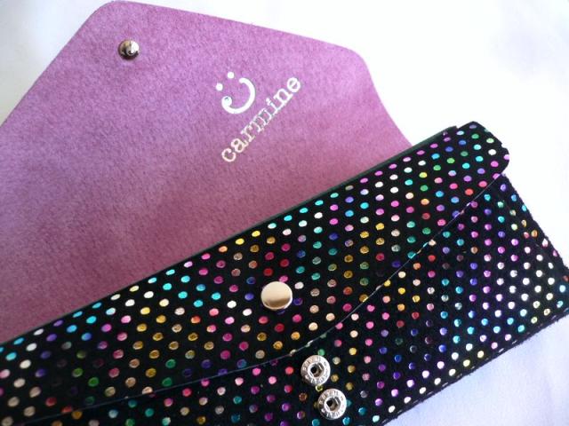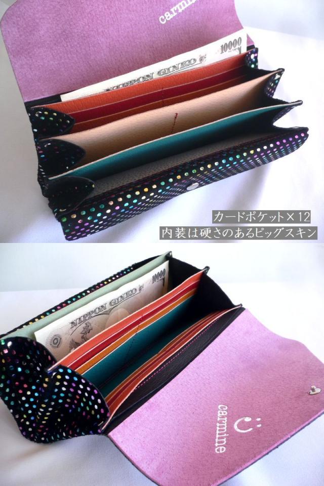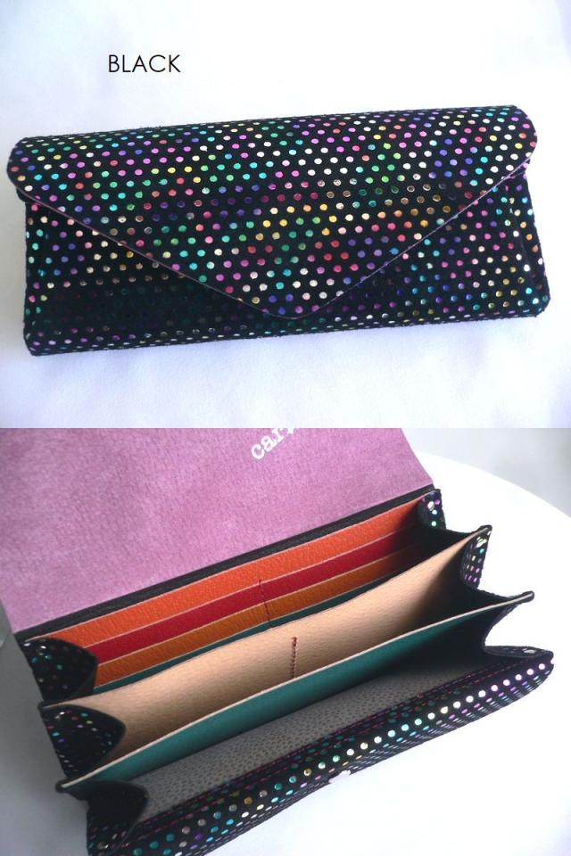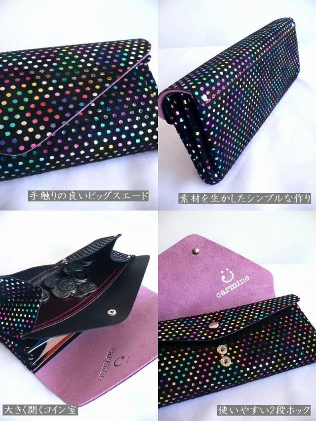 ノベルティ carmine カーマイン 水玉 プチドットメタリック 箔押し スエード レザー ロングウォレット 長財布 LWPD ブラック