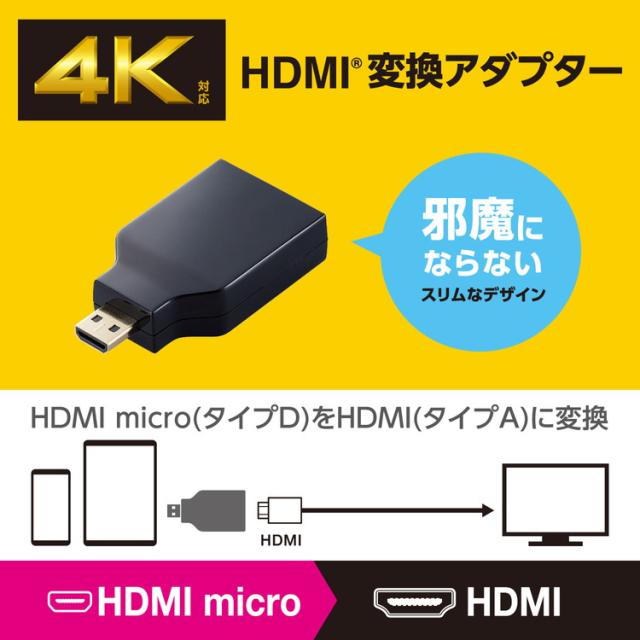 HDMI 変換アダプタ Micro HDMI タイプD オス to HDMI タイプA メス 4K 60P スリムコネクタ RoHS指令準拠 ブラック AD-HDADS3BK 代引不可
