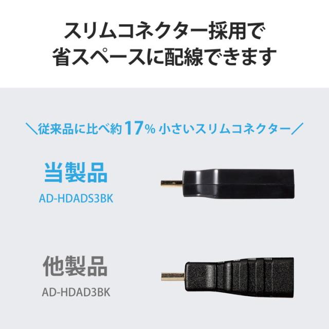 従来品に比べ約17%小さいスリムコネクター採用により、配線時の省スペース化が図れます。(AD-HDAD3BKとの比較)