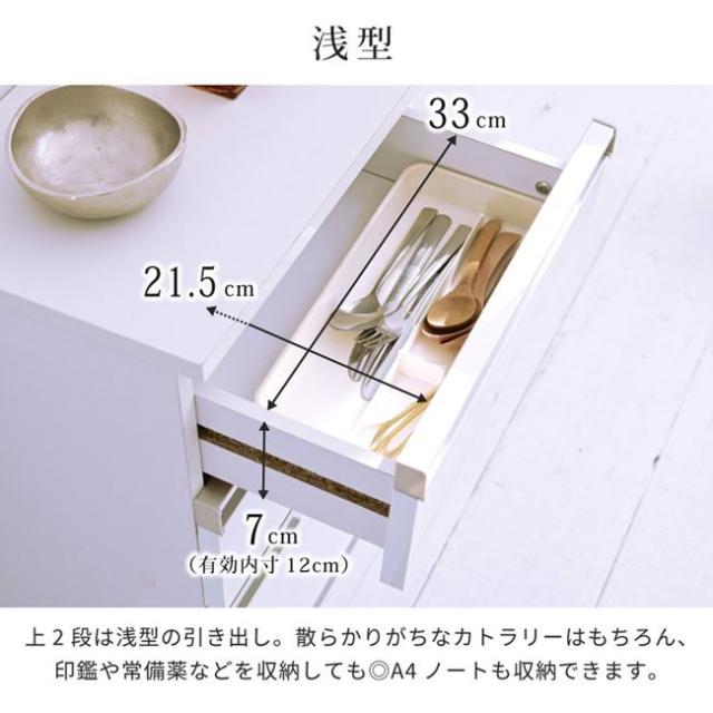 カウンター下収納 4段チェスト リビング キッチン コンパクト スリム 引き出し収納棚 白 ホワイト