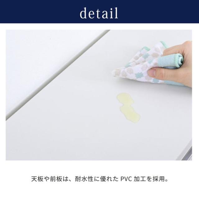 ●天板や前板は、耐水性に優れたPVC加工を採用しお手入れも簡単です。