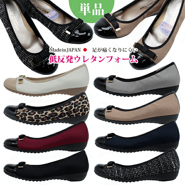 ローヒールパンプス 歩きやすい 疲れにくい 低反発 衝撃吸収 クッションインソール 日本製 軽量 リボン エナメル ARCH CONTACT