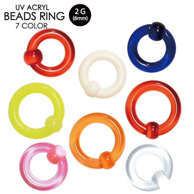 【メール便対応】ボディピアス キャプティブ ビーズ リング 2G(6mm) UVアクリル ボディピアス 2G(6mm) 【CBR キャプティブ ビーズリング】【BCR ボール クロージャー リング】 イヤーロブ 赤 青 白 黄 橙┃