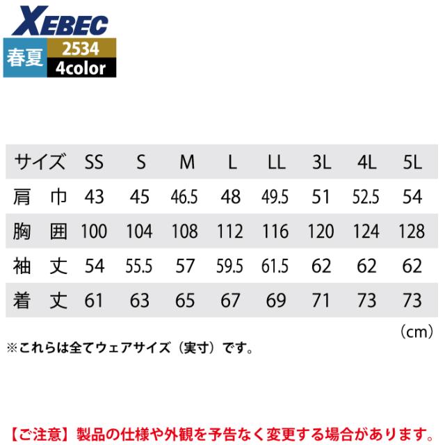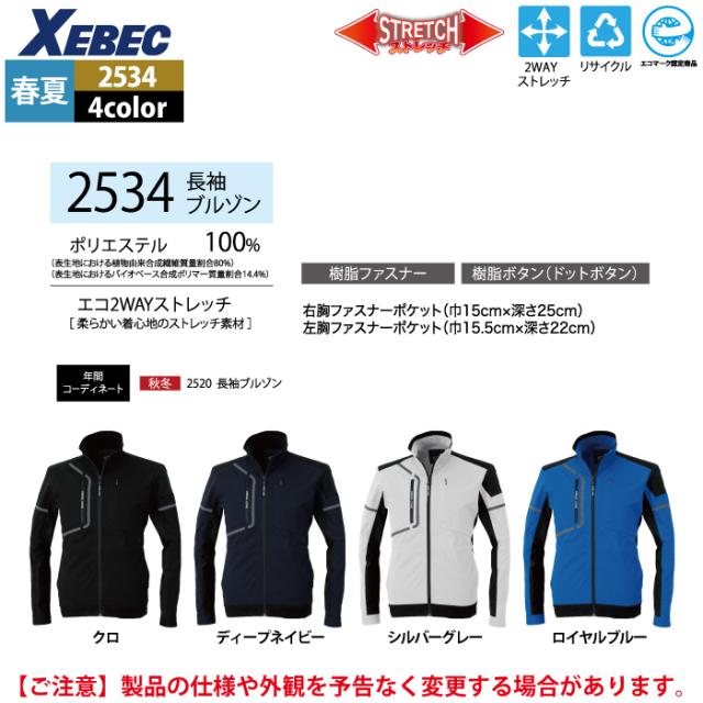 ジーベック XEBEC 作業服 春夏用 2534 長袖ブルゾン 4L-5L 作業着