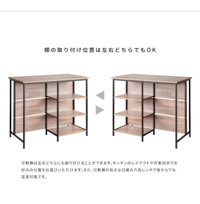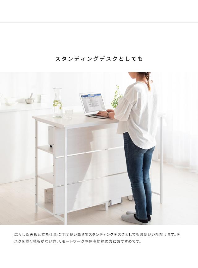 広々とした幅120cmと丁度良い高さ100cmの天板は調理スペースやカウンター、スタンディングデスクなどとにも快適にお使いいただけます。リビングやキッチンとの間仕切りとしても便利。