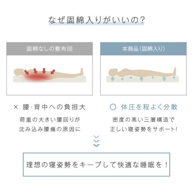 敷布団 固綿 分割式 敷き布団 ウォシュロン 洗える シングル 三層敷布団 敷ふとん 敷ぶとん 洗える 敷布団 洗える布団 硬め 軽量 高反発 敷き布団 マットレス