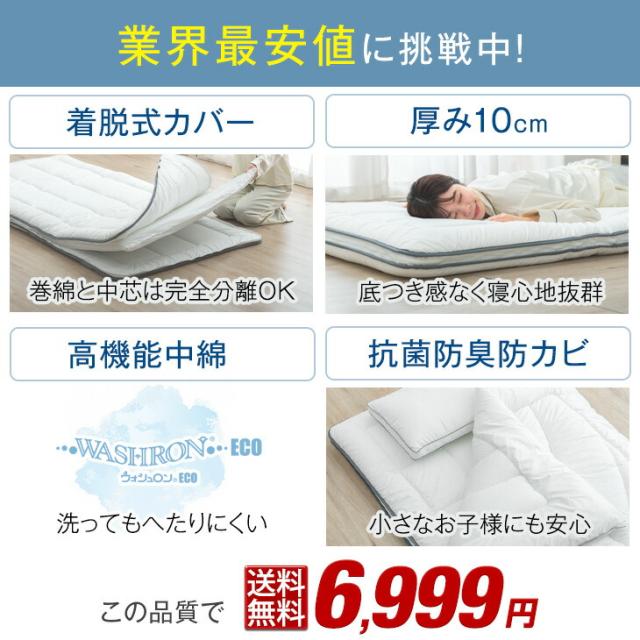 【正午〜P5%還元】 敷き布団 シングル 極厚10cm 三層 洗える 敷布団 シングルサイズ 完全分割式 テイジン 清潔 おすすめ 着脱式 固綿入り マットレス 軽量 軽い 布団 来客用