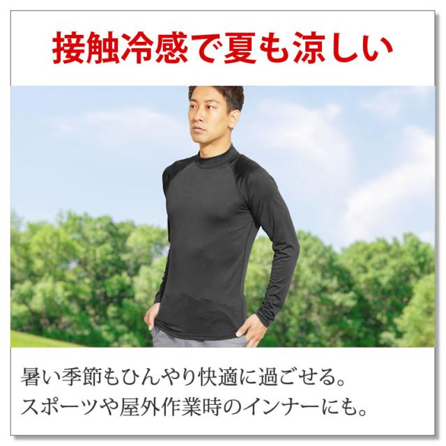 高い吸水速乾性で濡れてもすぐに乾いてベタつかず、ひんやり冷たい接触冷感だから、スポーツや屋外作業時のインナーとしてもおすすめ。