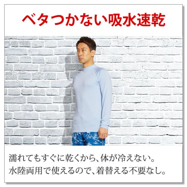 | アウトドアブランドのラドウェザー から、UPF50+のラッシュガードが誕生。 浴び続けると、肌のダメージだけではなく免疫力の低下も招くとされている紫外線。 このラッシュガードはUPFが最高等級の50+、UVカット率は98%もあるので、着るだけで紫外線からしっかり守れて、日焼け止めを何度も塗り直す必要がない。 夏の海やプールでも、日差しを気にすることなく目一杯楽しめる。 高い吸水速乾性で濡れてもすぐに乾いてベタつかず、ひんやり冷たい接触冷感だから、スポーツや屋外作業時のインナーとしてもおすすめ。 耐塩素、耐塩水加工を施しているので、プールの高濃度の塩素や海水に長時間晒されても生地が傷まず長く着られるのも嬉しい。 UVカット、吸水速乾、耐塩素、耐海水性能は検査機関で試験済。 確かな性能が実証されています。 生地や縫製にも快適な着心地にするための工夫がいっぱいで、ずっと着ていたくなるような着心地の良さ。 カラーもコーディネートしやすいパステルカラーを中心に8色もあるから、水着やサーフウェアにも合わせやすい。 真夏の海やプールはもちろん、キャンプなどのアウトドアウェアとしても大活躍間違いなし。 ■日焼けを防ぐ UPF50+ 確かなUVカット性能で、紫外線から肌を守る! 真夏の強い日差しの中でも、焼かない。 ■耐塩加工で長く使える プールの強い塩素や海の高い塩分濃度でも劣化しにくい生地を使用。 ■接触冷感で夏も涼しい 暑い季節もひんやり快適に過ごせる。 スポーツや屋外作業時のインナーにも。 ■ベタつかない吸水速乾 濡れてもすぐに乾くから、体が冷えない。 水陸両用で使えるので、着替える不要なし。 ■動きやすい4WAYストレッチ 縦横両方に伸縮するから、どんなに動いてもしめつけやツッパリ感が無くラクチン。 ■確かな性能だから安心 UVカット、吸水速乾、耐塩素、耐海水性能は、検査機関による試験で実証済。 ■優しい着心地 素肌に着るラッシュガードだからこそ、着心地の良さ、肌触りにも妥協はなし。 サラリとした滑らかで肌触りの良い生地。 裏は凹凸のないフラットシームで、肌着のような優しい肌当たり。 | |