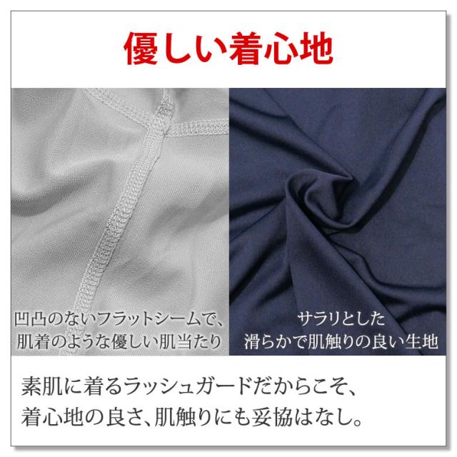 - 商品が、届きました。私は、アレルギーが有るので、UV対策は1年中欠かせません。そこで、ラッシュガードを1枚着るだけでUV対策は勿論、日中に外出も安心して出来、とても気に入ってます。ゆうパケットなのに、早く届いて助かりました。有難う、又宜しくお願いします。