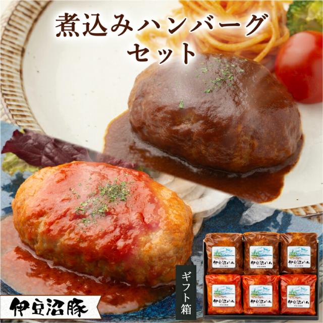 煮込みハンバーグ セット 3個×2種 トマトソース デミグラスソース ギフト 簡単調理 冷凍 惣菜 おかず 洋食 肉 豚肉 個包装 詰め合わせ プレゼント 誕生日 総菜 6個入 お祝 内祝 お礼 出産祝 御祝 御礼 お返し 送料無料 贈答 子供 お年寄り 国産 宮城 東北 伊豆沼農産