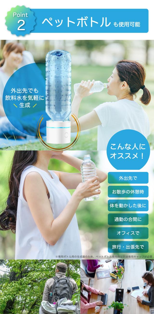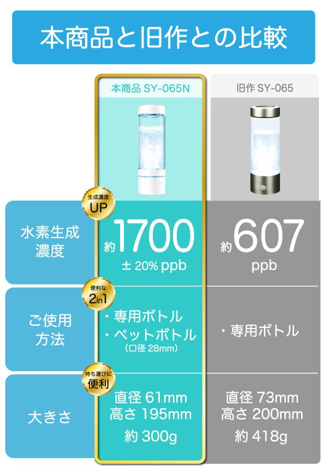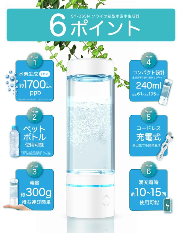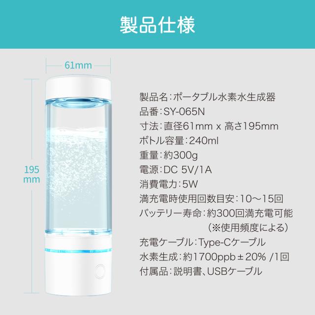 水素生成器 SY-065N 水素水生成器 専用キャップでペットボトルでも水素生成 水素水ボトル | 高濃度 高濃度水素水 水素 水素水 水素水ボトル ウォーター 水 ミネラルウォーター 水素 充電式 ポータブルサーバー