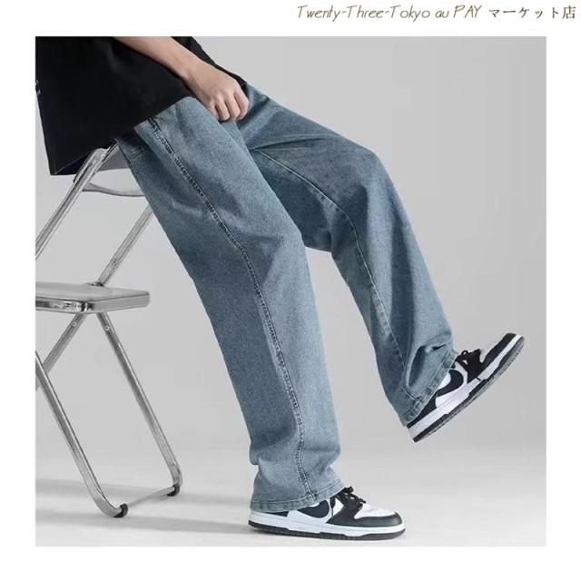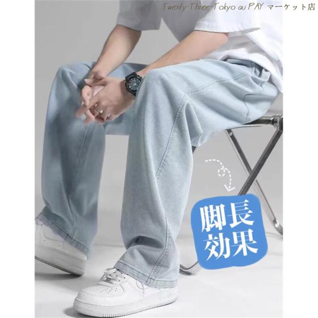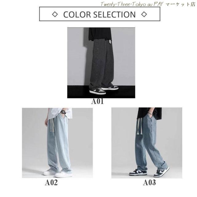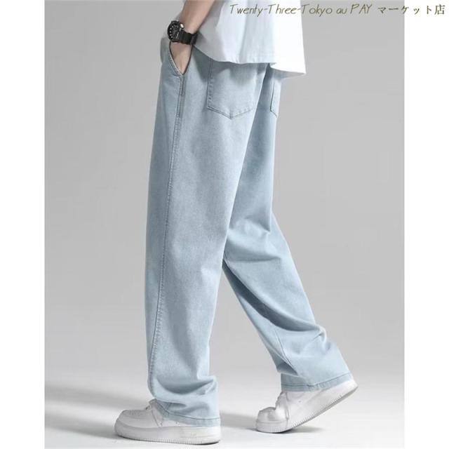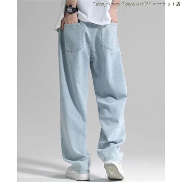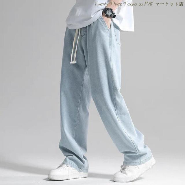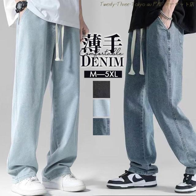 送料無料 デニムパンツ メンズ ウェストゴム ジーパン 薄手 ボトムス 紳士用 おしゃれ ロング丈 体型カバー ゆったり ワイドパンツ 脚長効果 カジュアル
