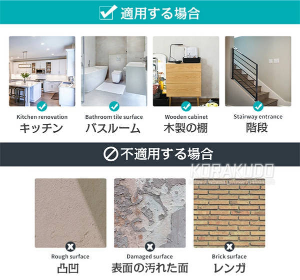 ◆ 撥水加工が施されて、変色や変形がしにくいです。キッチン、洗面所、お風呂場など様々な場所に施行可能。