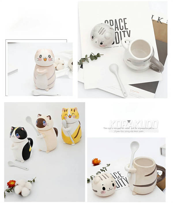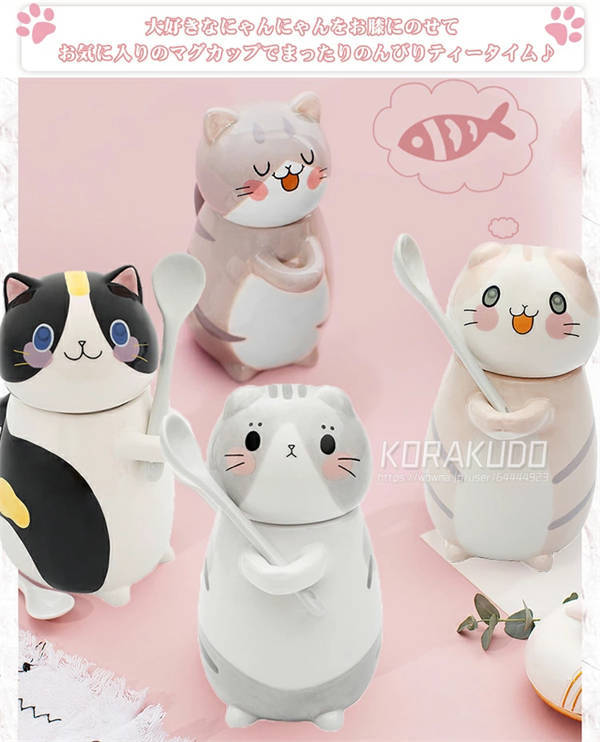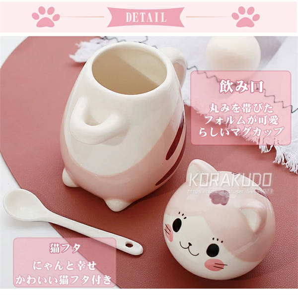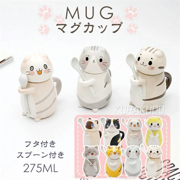 マグカップ 飾り コーヒーカップ 猫 猫柄 かわいい 蓋付き スプーン付き マグ カップ 陶器 ホワイトデー バレンタイン ギフト ネコ カップル コーヒー 紅茶 お誕生日 プレゼント 食器 軽量 耐熱 おしゃれ オフィス 家 在宅ワーク