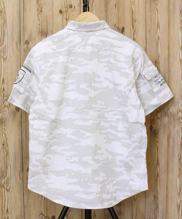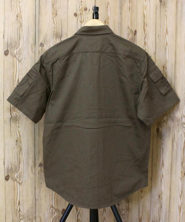 デザインはAVIREXのロングセラー「ファティーグTシャツ」のデザインをカーキシャツに落とし込みました。